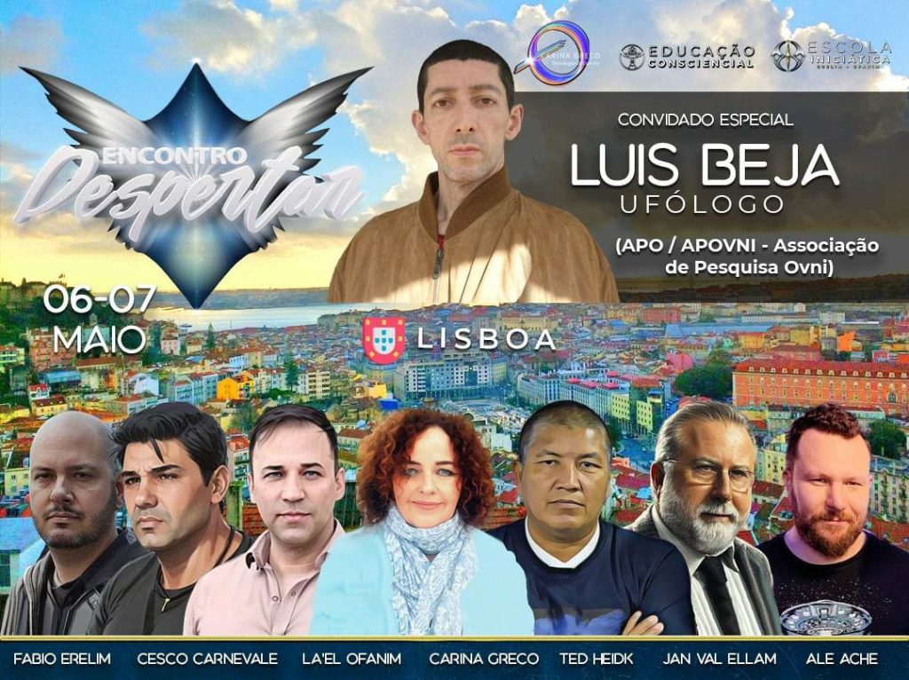 A APO foi convidada para integrar o painel no ENCONTRO DESPERTAR – 6 – 7 – MAIO com FÁBIO ERELIM E L’AELL OFANIM, e seus CONVIDADOS-INVESTIGADORES E ESPECIALISTAS: Jan Val Ellam; Carina Greco; Cesco Carnevale; Ted Heidk; Luis Beja (APO-Associação de Pesquisa Ovni/ Ufo); e Ale Alexandre Ache do famoso podcast PARANORMAL EXPERIENCE !