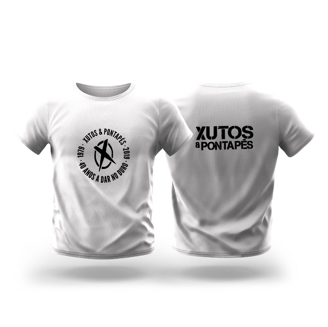 T-Shirt Tour 2019 Branca com estampa em círculo preto. Nota: Todas as encomendas são enviadas até oito dias úteis desde a data de pagamento.