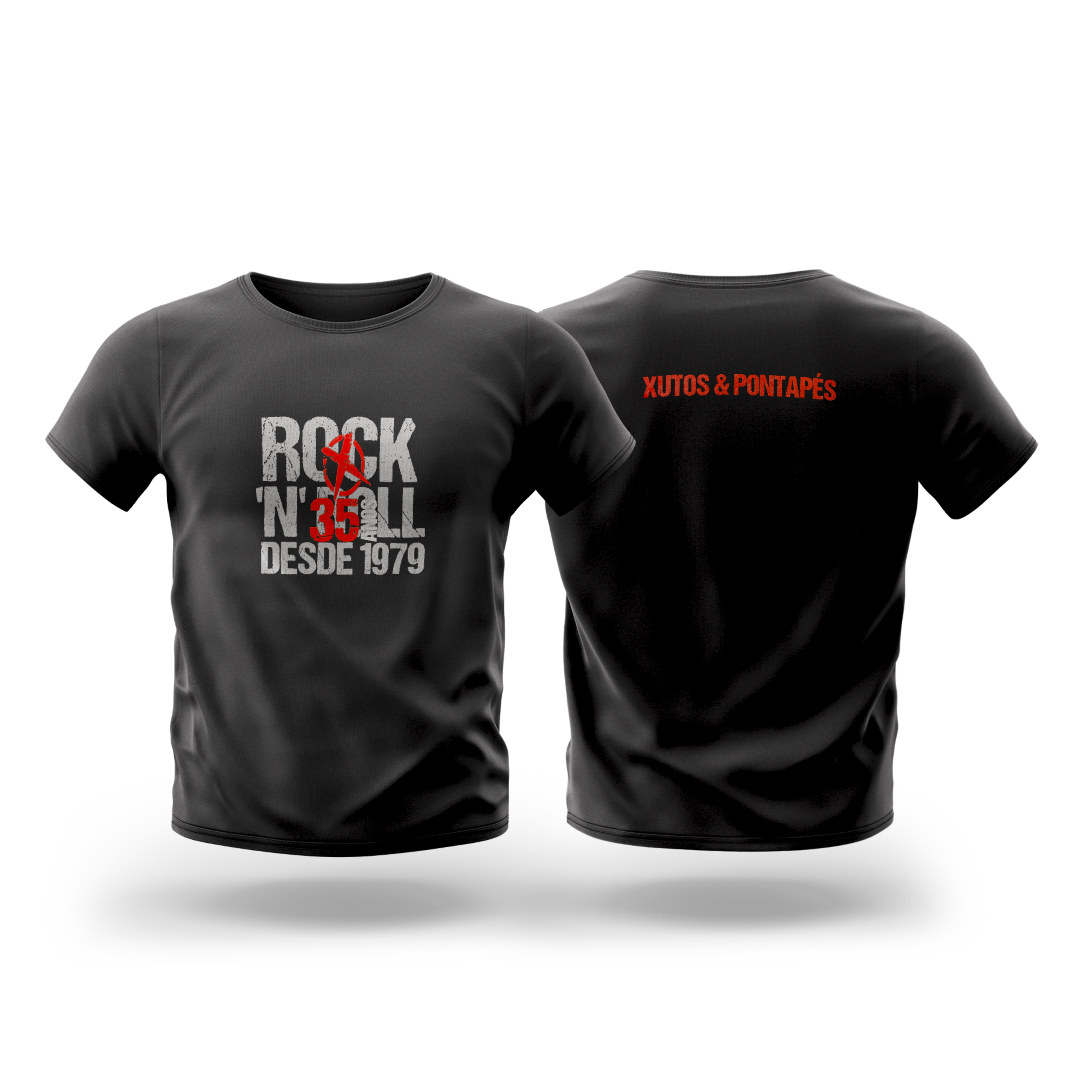 T-Shirt dos 35 anos Xutos & Pontapés ( letras cinza e vermelho ).