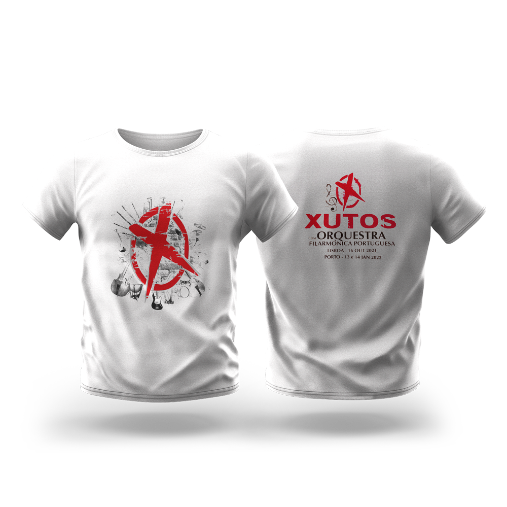 T-Shirt branca Xutos & Pontapés com Orquestra Filarmónica Portuguesa Nota: Todas as encomendas são enviadas até oito dias úteis desde a data de pagamento.
