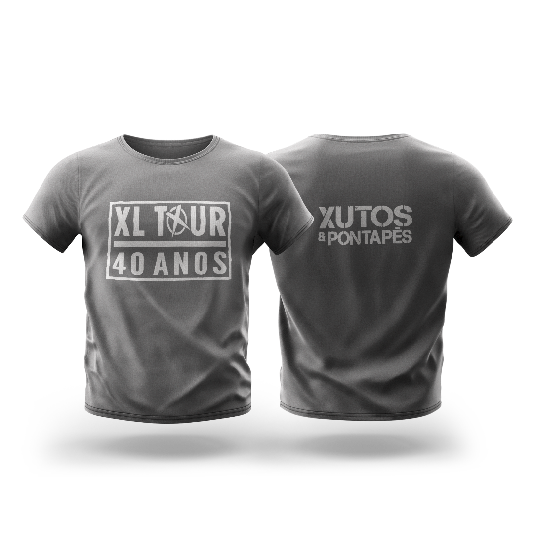 T-Shirt Tour 2019 Cinza com estampa branca ( frente e costas ).